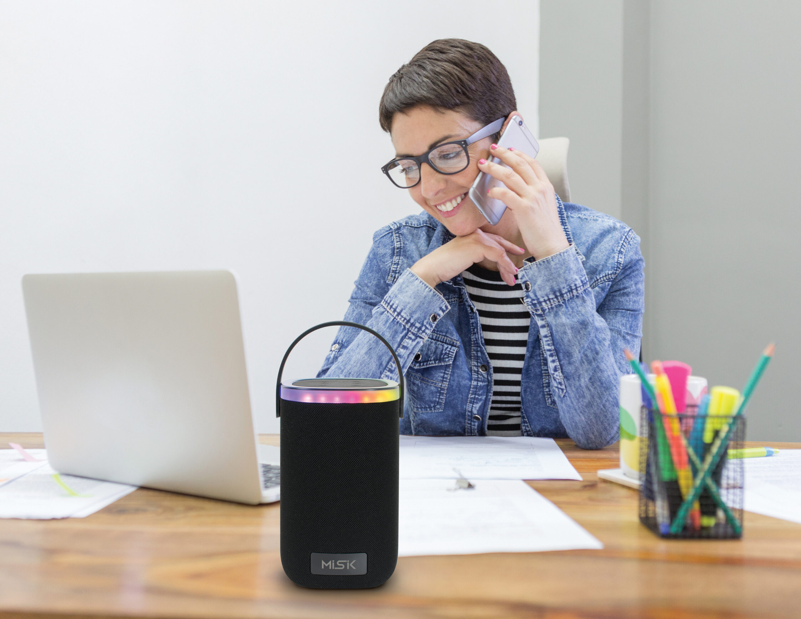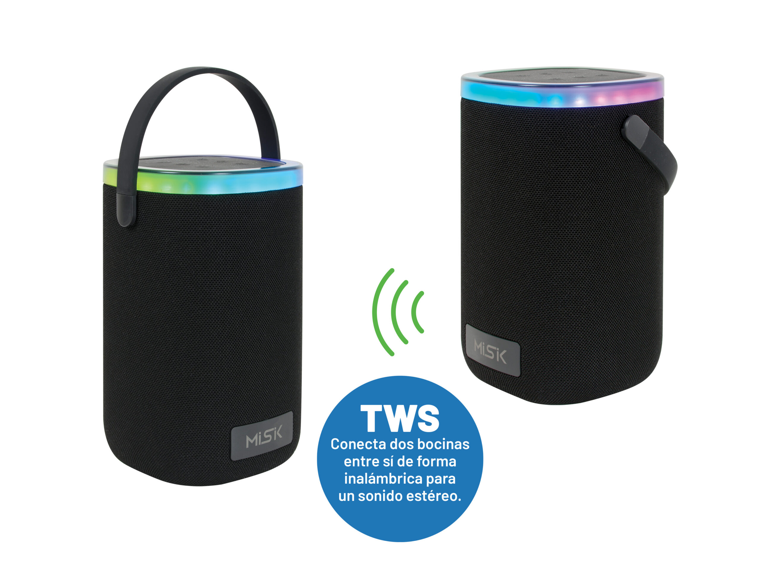 La Bocina Portátil TWS combina sonido potente y diseño moderno para que disfrutes de tu música en cualquier lugar. Sus luces LED dinámicas crean un ambiente vibrante, mientras que su reproductor USB y conexión inalámbrica estable te ofrecen máxima comodidad.