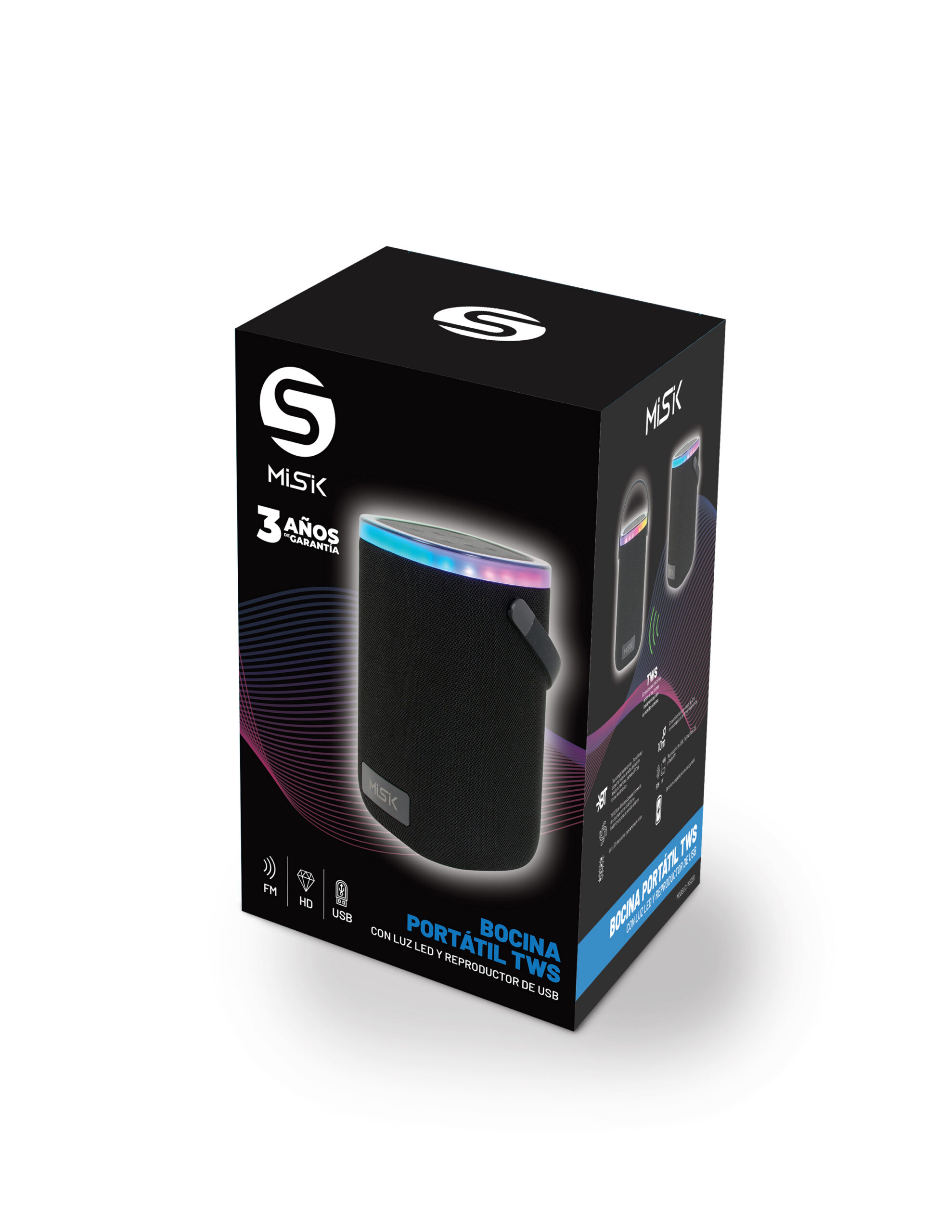 Bocina portátil TWS con luces LED y puerto USB